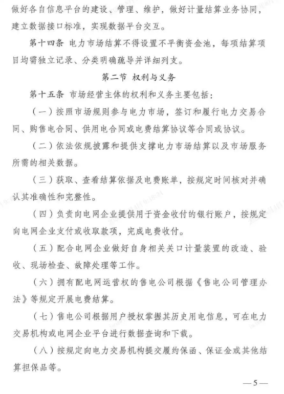 《规则》明确参与电力市场的虚拟电厂(聚合商)、新型储能等新型经营主体遵照本规则执行,电力交易机构和电网企业以市场经营主体为单元开展结算。