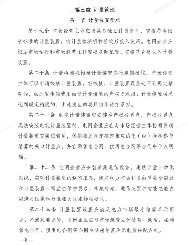 储能与电力市场获悉,近日,国家发展改革委、国家能源局印发《电力市场计量结算基本规则》(以下简称《规则》)。这意味着涵盖电力市场各品种各环节的**统一电力市场“1+6”基础规则体系初步建设完成。